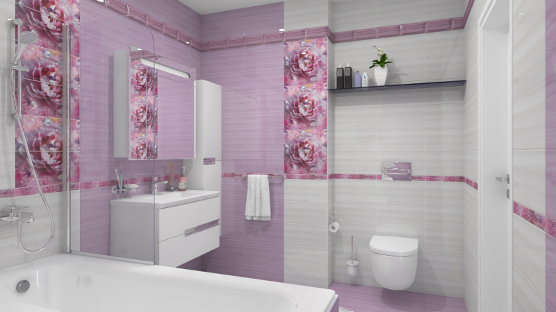 размера 10x20, розового цвета. Данный вид плитки, с цветочным рисунком,